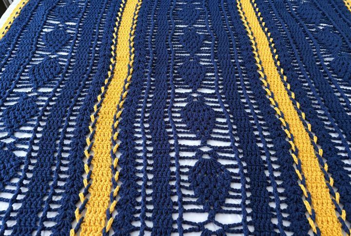 5” wide x 74 “ long. Shades of green. Closed single crochet
